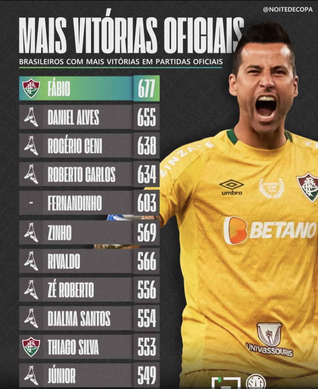 Brasileiros com mais vitórias OFICIAIS na história do futebol: 677 🇧🇷 Fabio 🥇🆙